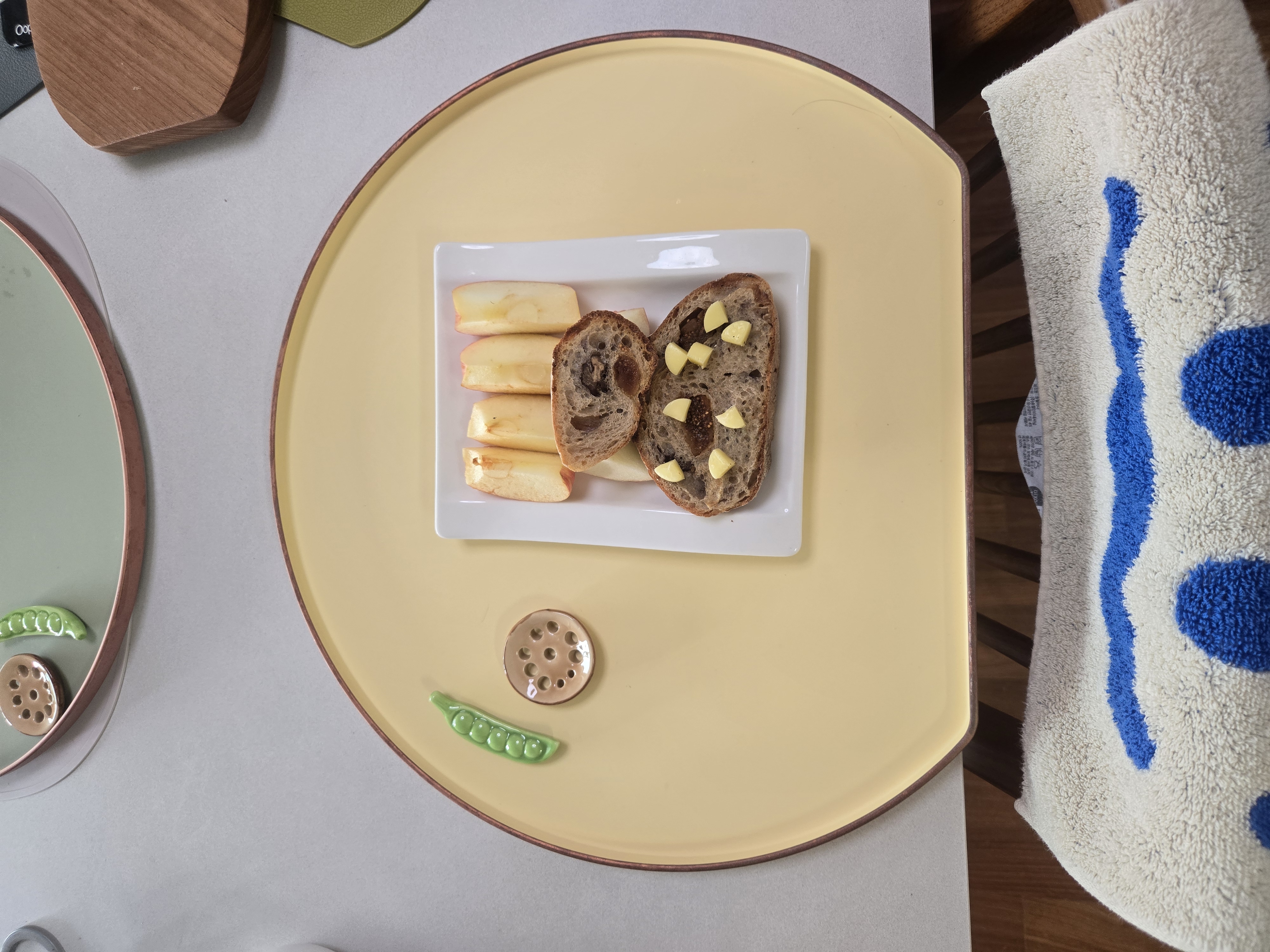 아침 빵두조각 치즈한조각 사과반쪽