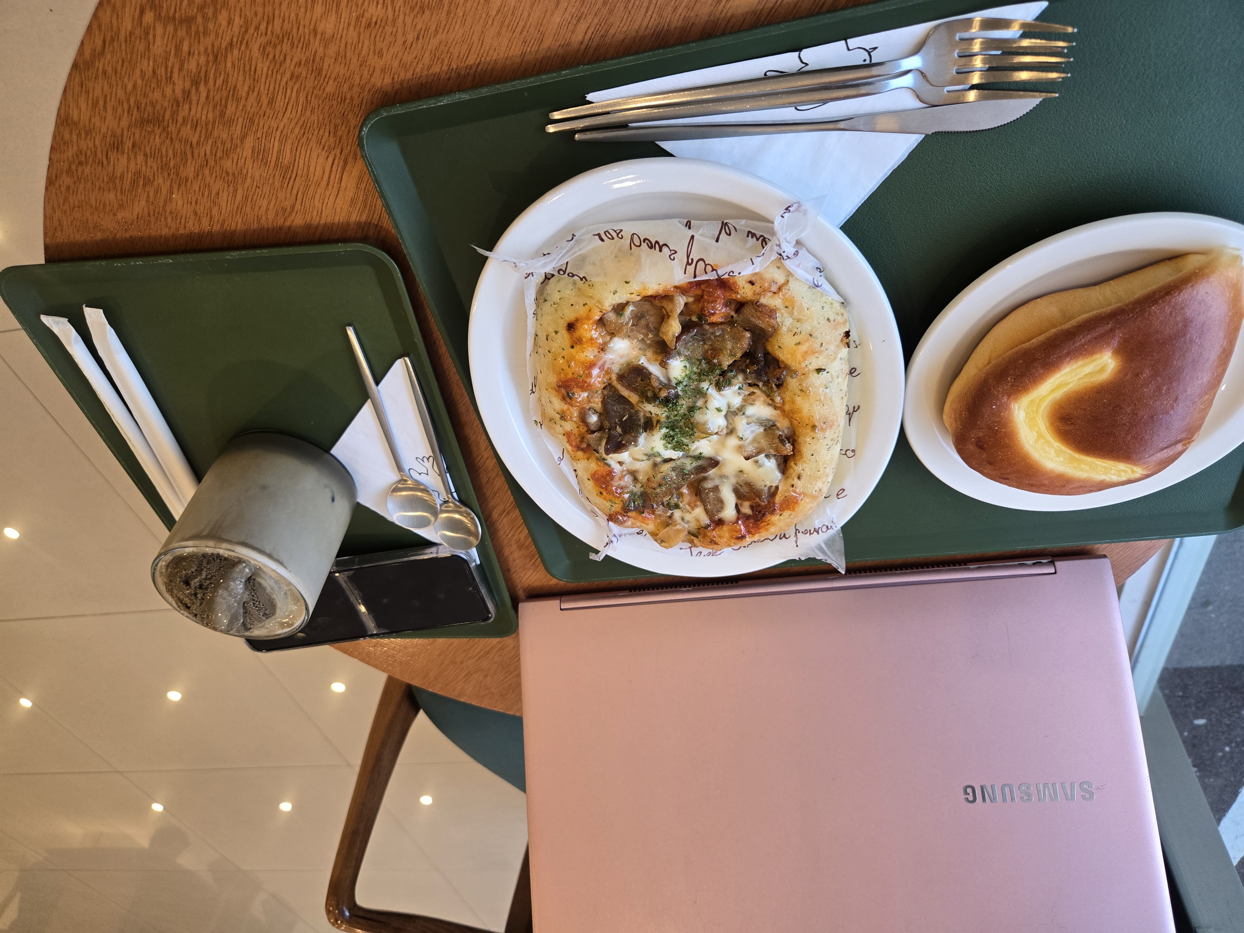 저녁 흑돼지포카치아 반 슈크림빵 반 호지차라떼 반