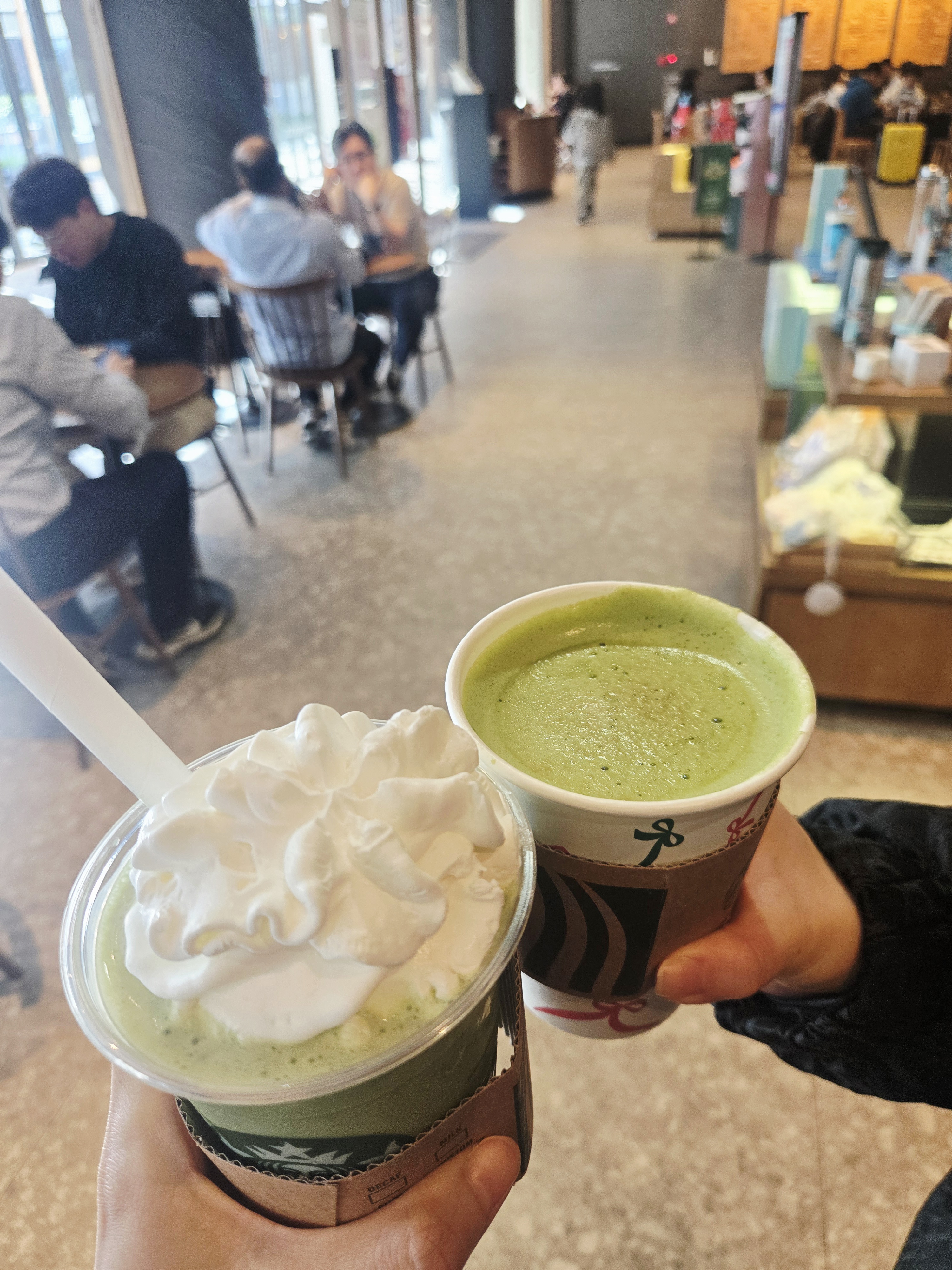 아침 그린티크림프라푸치노 시럽빼고 두유로